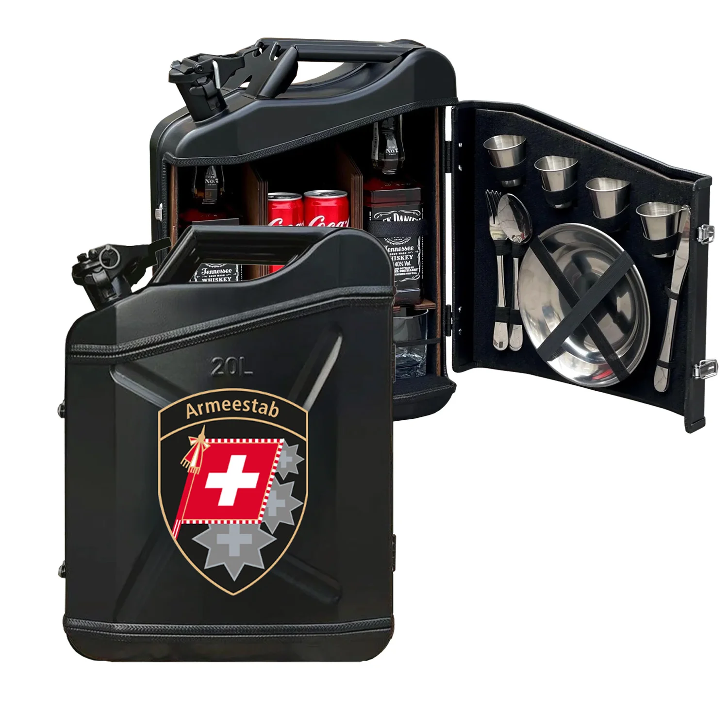 Die Kanister Mini Bar ist ein Kanister in dem eine Mini-Bar eingebaut ist. Die Kanister Mini Bar lässt sich durch die verschliessbare Tür sehr gut transportieren und wird auf jeder Party das Highlight.
