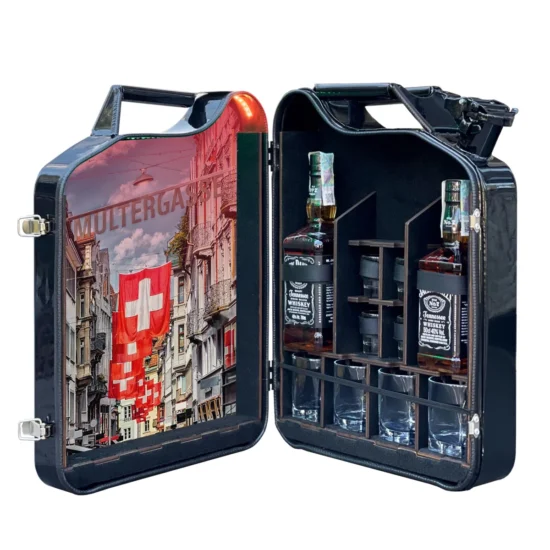 Sie könne unsere Kanister Mini Bar auch auf Ihre Wünsche Personalisieren (mit Ihrem Firma Logo) oder Wüschen.