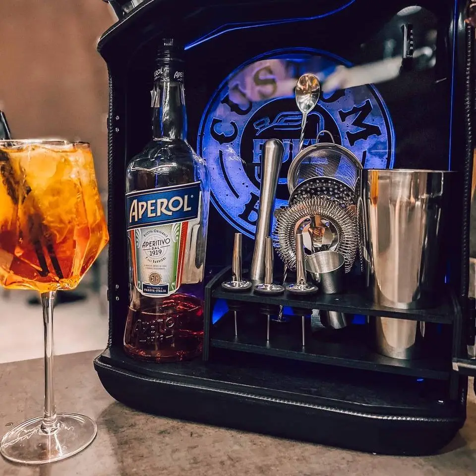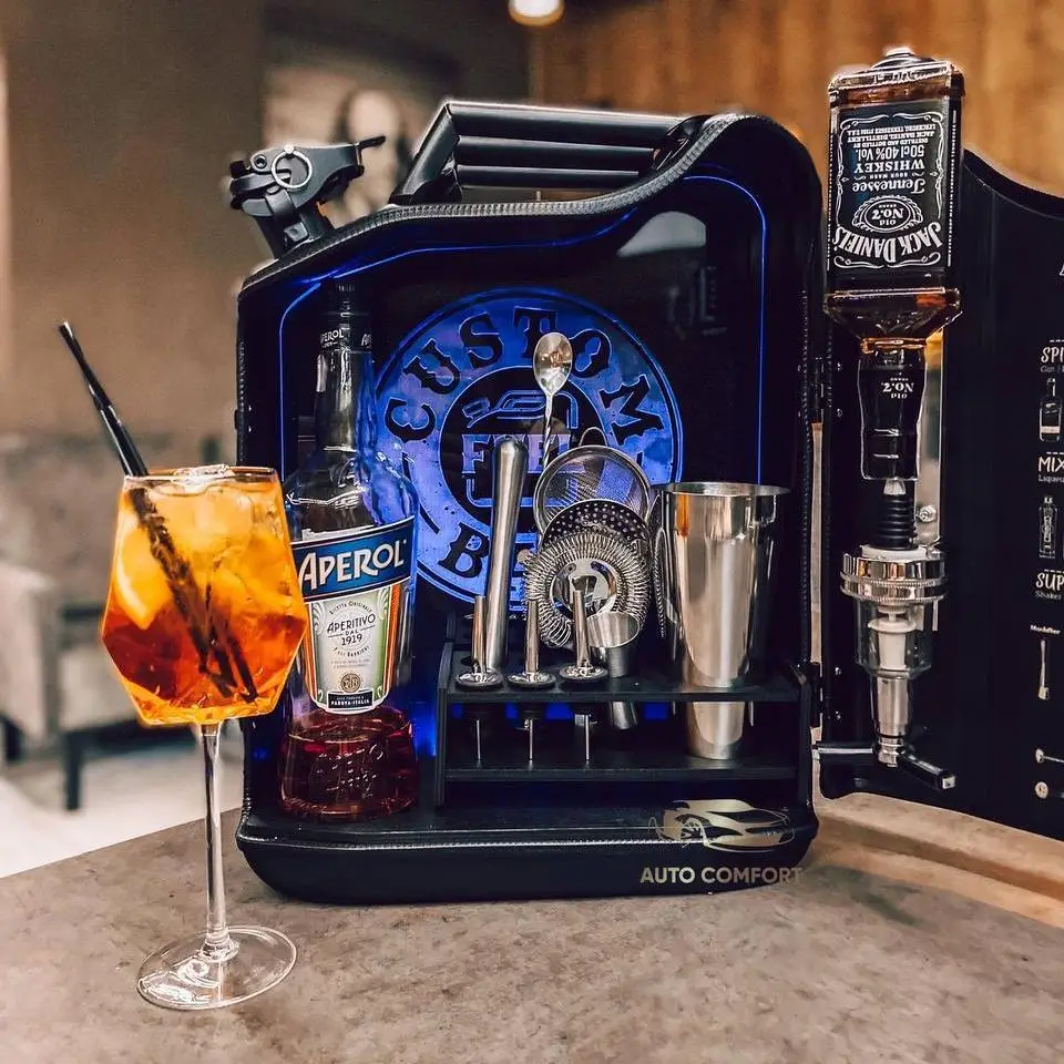 Die Kanister Mini Bar ist ein Kanister in dem eine Mini-Bar eingebaut ist. Die Kanister Mini Bar lässt sich durch die verschliessbare Tür sehr gut transportieren und wird auf jeder Party das Highlight.