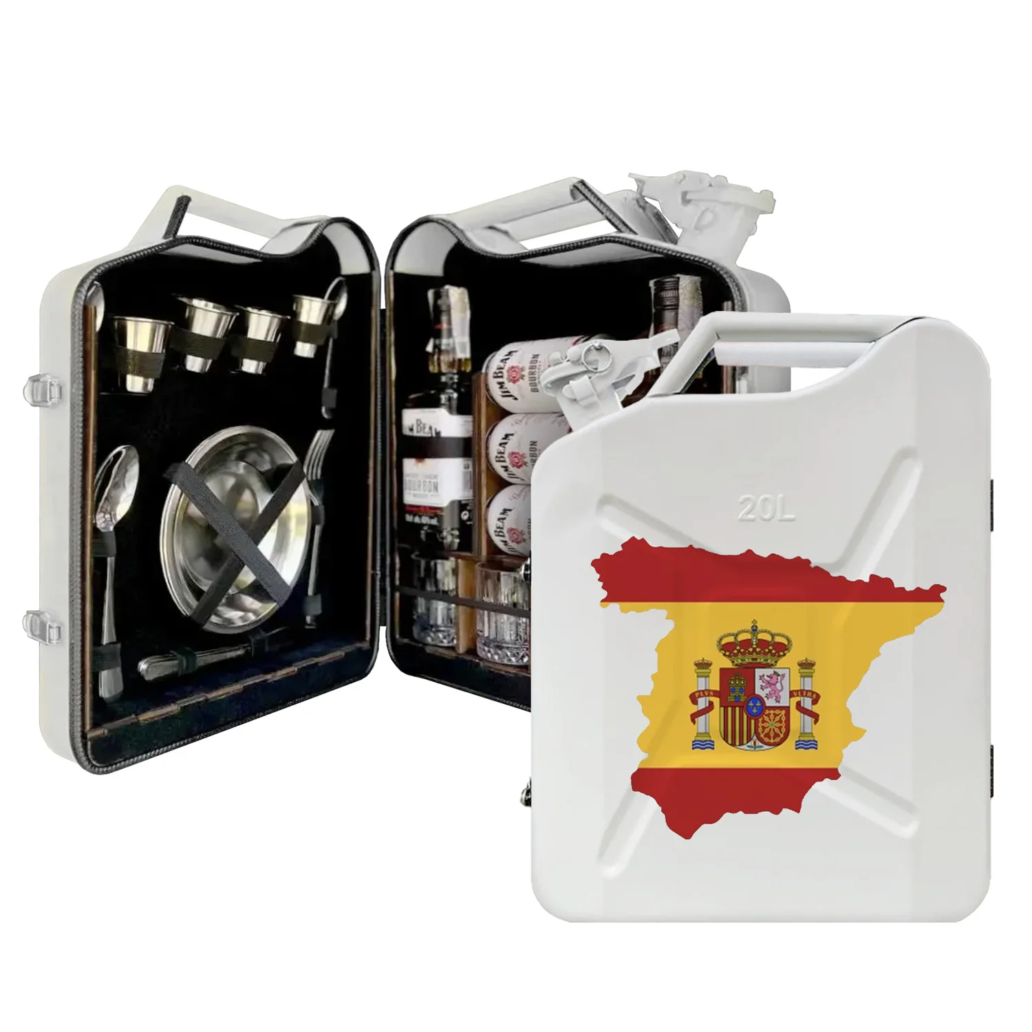 Ein Standardsatz Lederkanister umfasst einen Satz Metallgeschirr, 4 Flaschen und zwei Getränke zum Trinken.