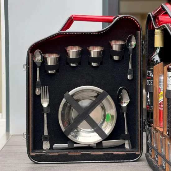 Unsere Mini-Bar aus einem echten 20-Liter-Metallkanister ist eine perfekte Kombination aus brutalem Design, Qualität und Komfort. Sie ist ein einzigartiges Accessoire, das zu einer Dekoration für jedes Interieur wird und dem Besitzer in jeder Situation Freude bereitet: im Urlaub, in der Garage, im Büro oder zu Hause.